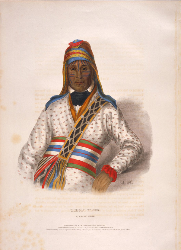 YOHOLO-MICCO A Creek Chief Charles Bird King (1785-1862) Lithograph, circa 1838 Paper size approx: 21 x 15 1/2 Condition: Good Framed $1000 INQUIRE